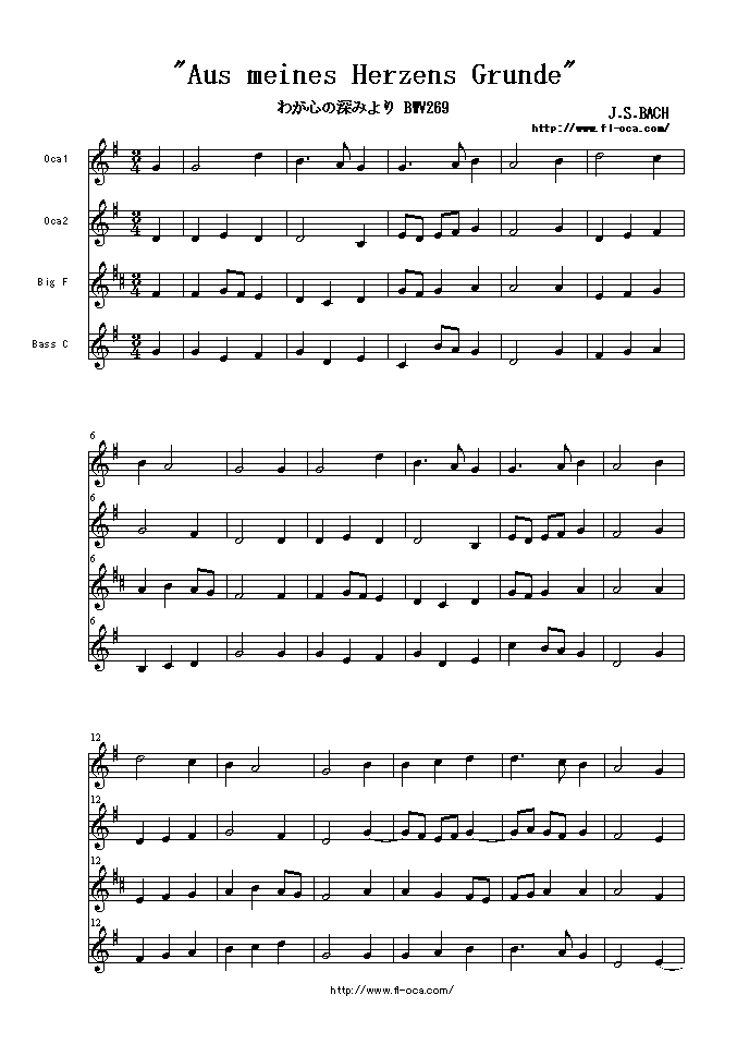 J.S.バッハ作曲 = コラール「わが心の深みより」 BWV269