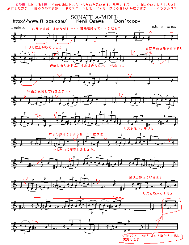 ヘンデル作曲 ソナタより イ短調 解説譜