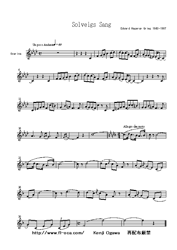 グリーグ作曲 ペールギュント第2組曲 作品55 「ソルベーグの歌」