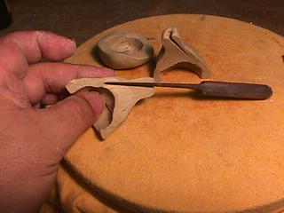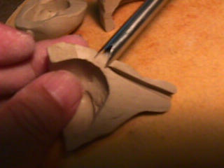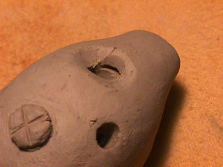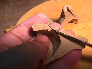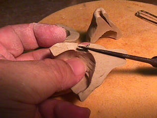 The space made by the boxwood spatula will become the air way. Make the 'edge' at the tip of the boxwood.