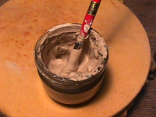 Mud suspension : Clay mixed in water. Used to put two pieces of clay together.