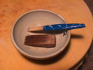(The above one was made from toothpicks. The below one was modified from a comb for pottery.)