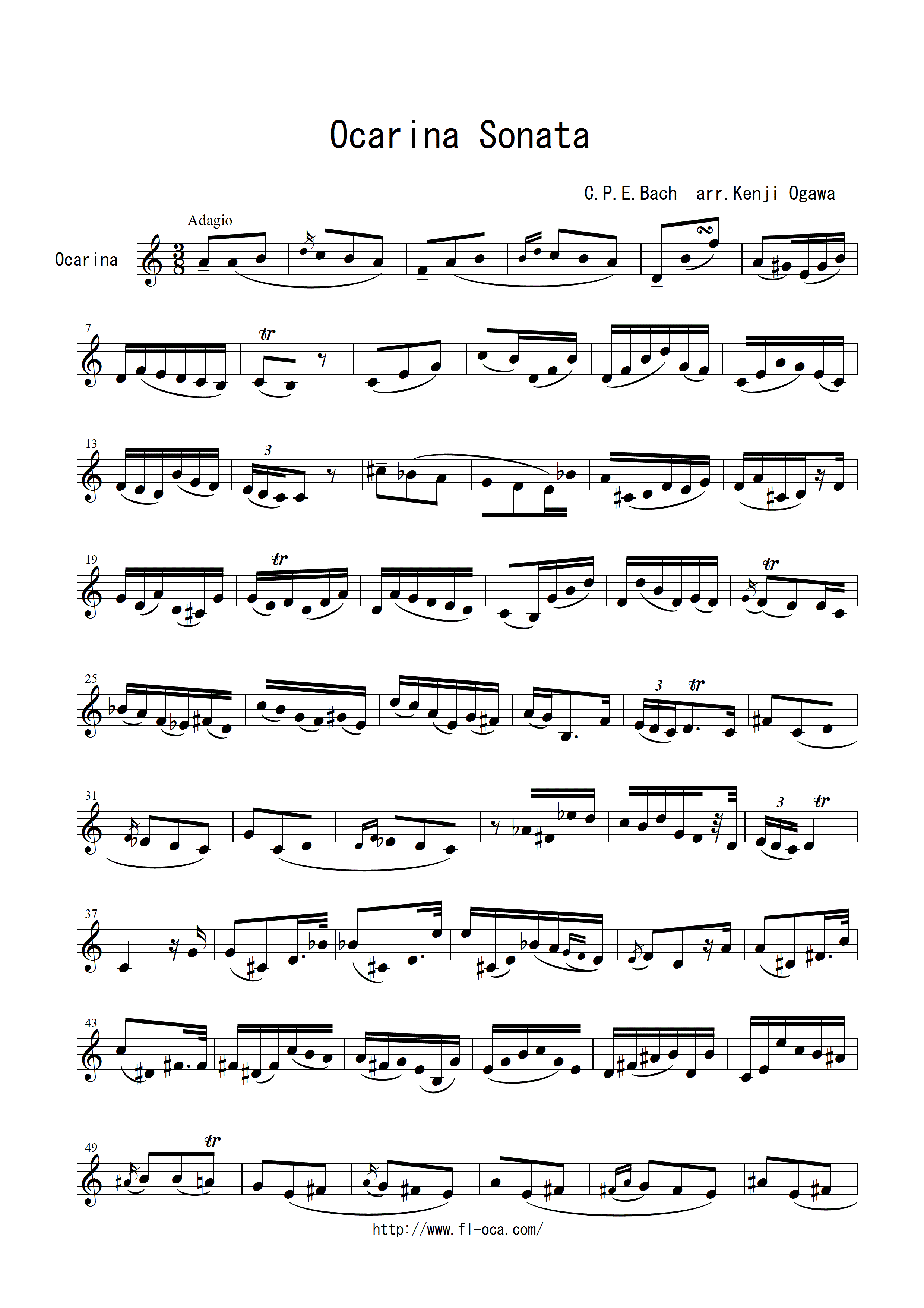 たった1本のオカリーナで、カール・フィリップ・エマヌエル・バッハのフルートの曲ソナタ無伴奏の録音を